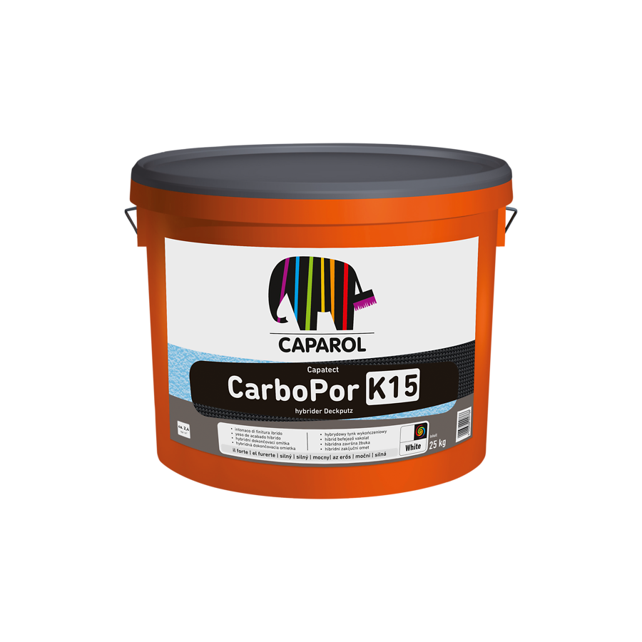 Capatect CarboPor K es altamente permeable, está reforzado con fibra de carbono y tiene un distintivo efecto hidroperlado.