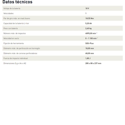 MARTILLO PERF. BAT.BHC 18 HPC 4 I-PLUS RF.577602